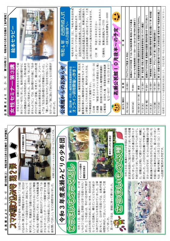 公民館だより「たかせ」第199号を発行しました![]()
