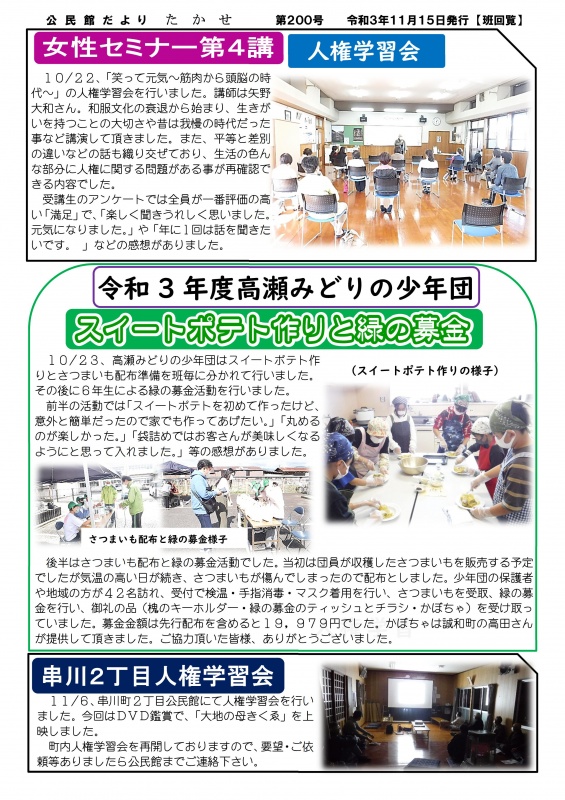 ←「女性セミナー 人権講演会」前の記事へ 次の記事へ「公民館だより「たかせ」第201号発行!!」→