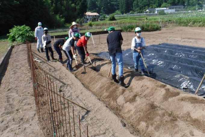 各班から2名ずつ代表が出て、ウネ作り体験を行いました