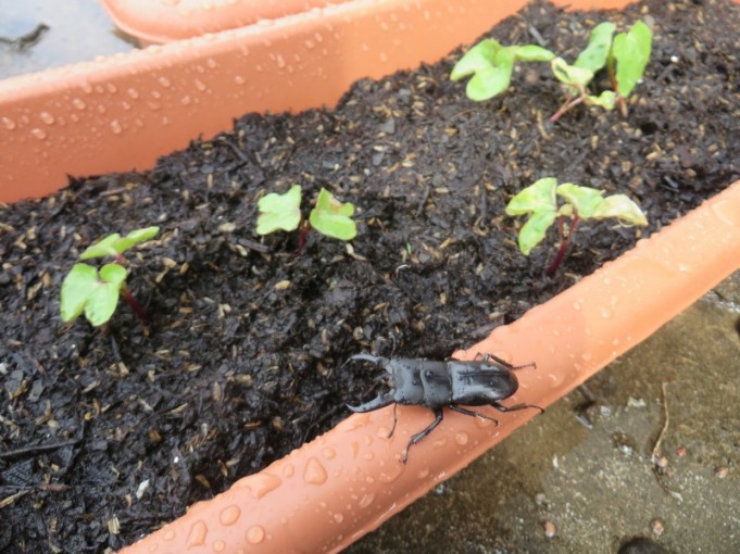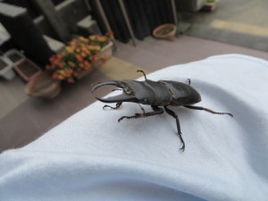 今朝から公民館に来ているクワガタ君と一緒に観察しました