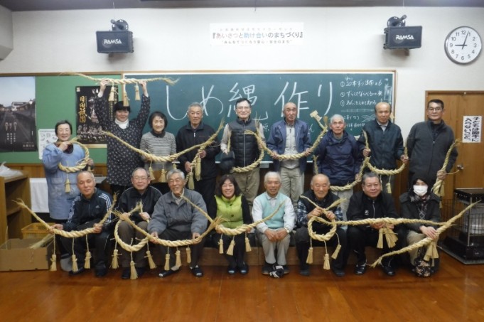 12月23日、高瀬の歴史公開講座でお正月用のしめ縄を作りました