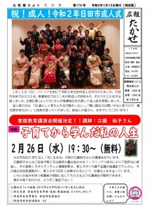 表面には、成人式の記事と家庭教育講演会のお知らせ