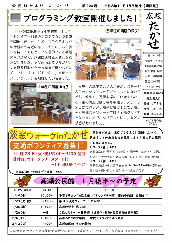 - 公民館だより「たかせ」第200号(R3.11.15発行)