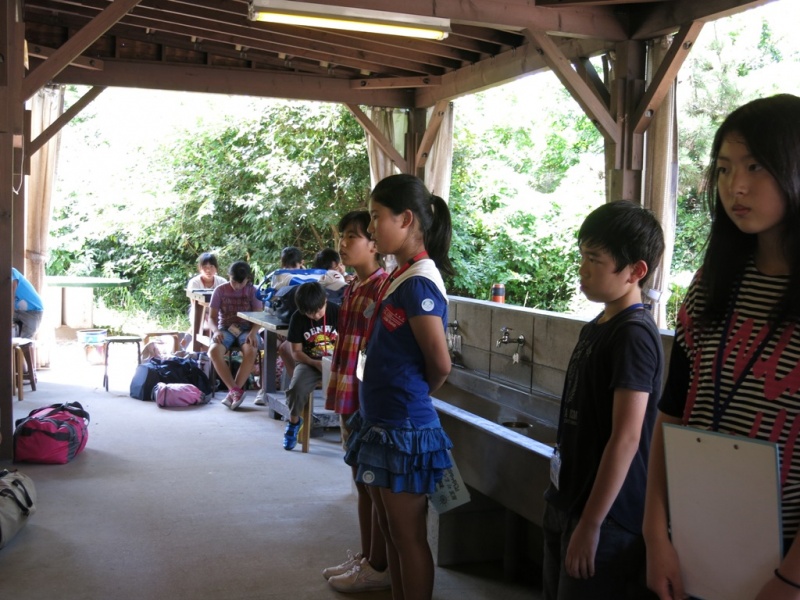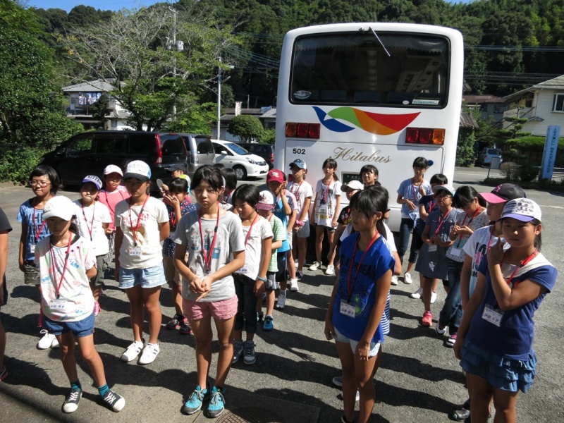 公民館前に集まって、サマーキャンプの出発式を行いました。とっても暑かったですが、キャンプということでウキウキしている皆さんです。