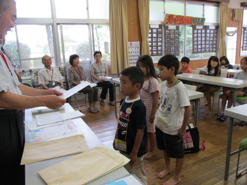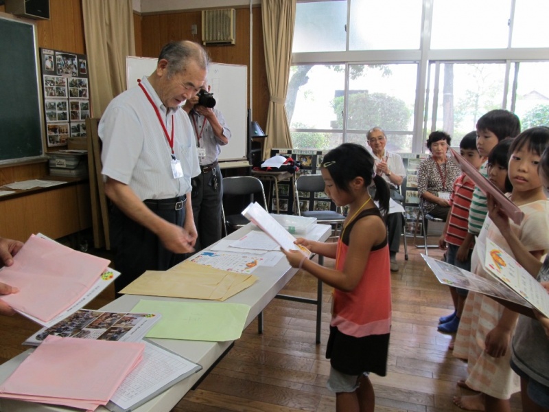 こちらは2年生。一人ひとりに努力賞と記念品の“漢字練習帳”が渡されました。