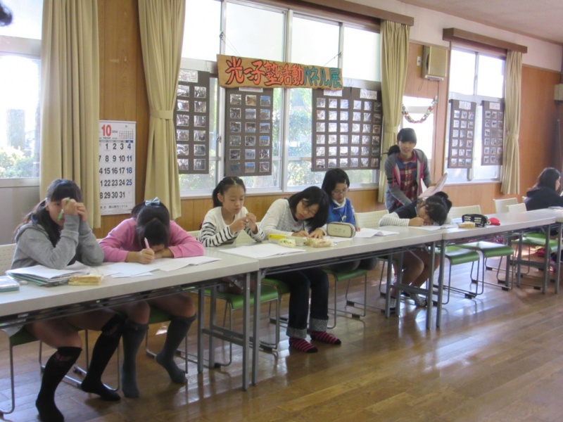 10月18日(土) 最終日の活動は、いつもどおり食器類を片付けたあとは、感想文(反省文)記入と大掃除。