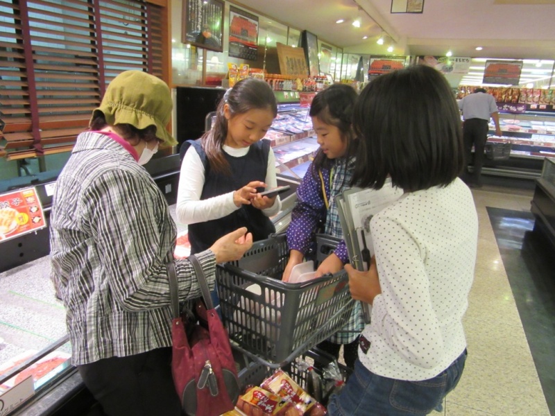 電卓を使って、予算の範囲内で納まるよう計算しながら買い物をしています。