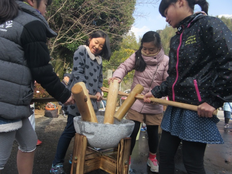 後半になると、臼の周りから子どもたちの姿が……。 一体どこに。