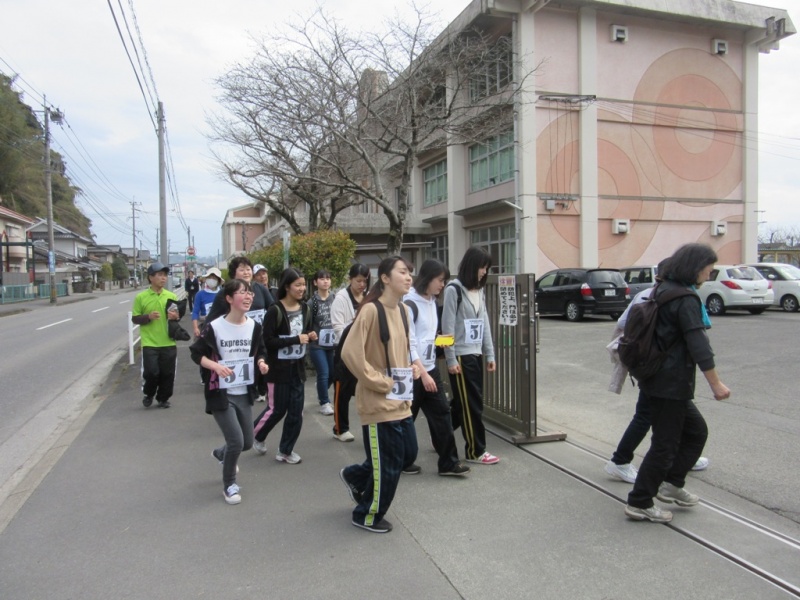 光岡小学校の校舎が見え始め、ゴールはすぐそこ!
