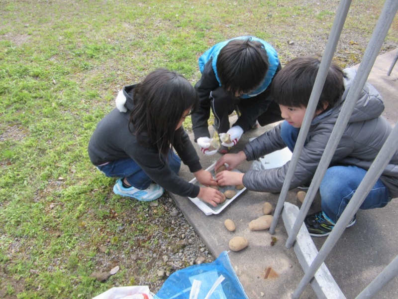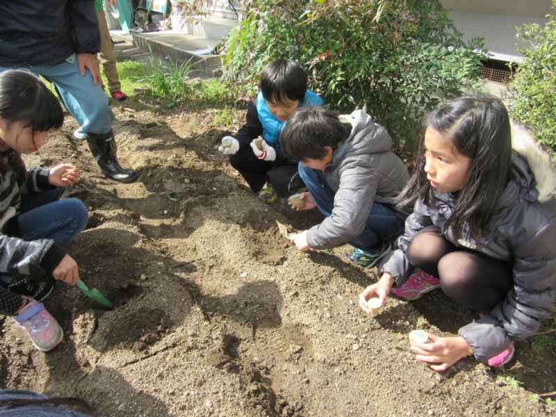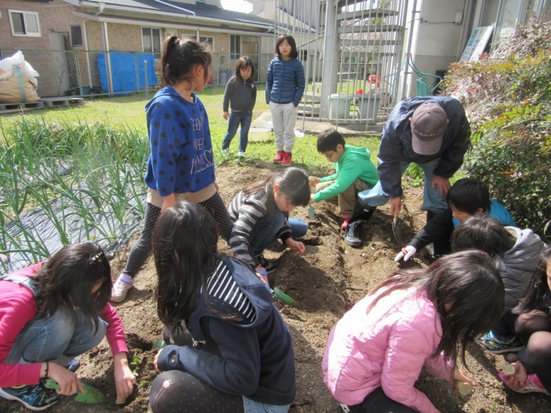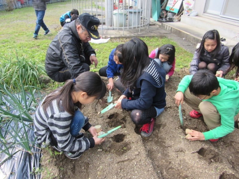 3月12日(土) ヒカリっ子塾の活動で、じゃがいも植えを行いました。 じゃがいも植えには、今年もボランティアの方が2名手伝いに来てくれました。そして植えたのは4年生。 じゃがいもを植えるのは、「初めて」という子ばかり、わずかなことですが、体験の機会として貴重なものになりました。 猫の額程度の畑に11名で植えたので、あっという間に終わりました。 このじゃがいもは、順調に育てば6月ごろに収穫し、7月~8月のヒカリっ子塾の活動の中で、カレーの材料として使う予定です。