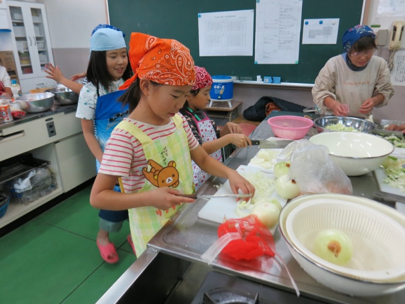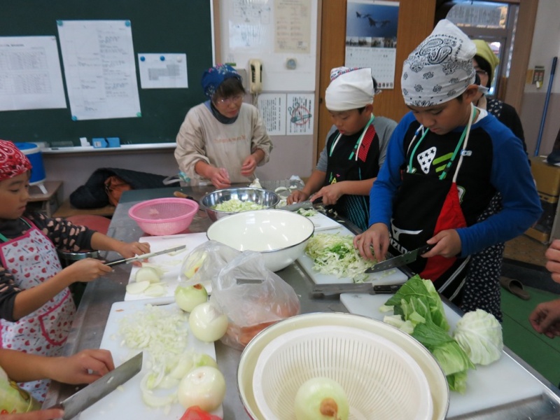 こちらは、キャベツ・玉ねぎを刻んでいます。