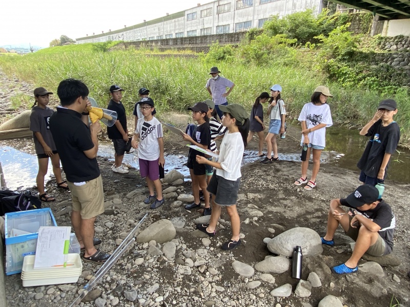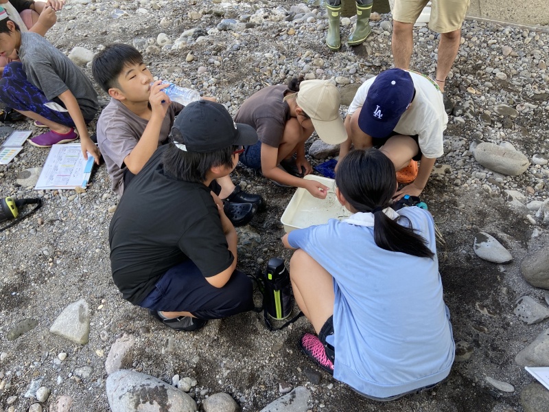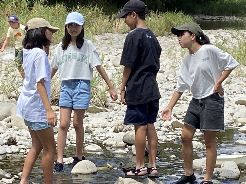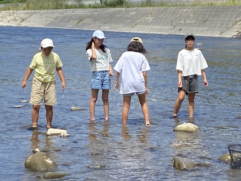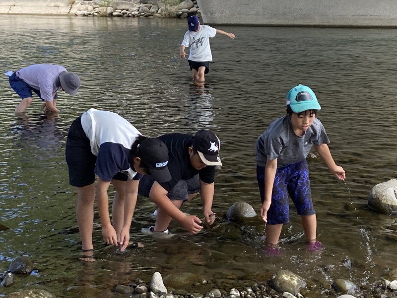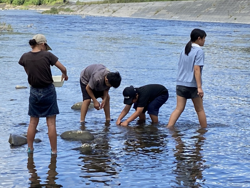 7月22日(月)、光岡ヒカリっ子塾第2講「川の調査隊とソーメン流し」 を実施しました。 日田市環境課職員の指導で花月川に生息する水生生物を採取して、キレ イな川に生息している生物か汚い川に生息している生物かを調査しました。 調査結果、花月川の水はきれいな水、キレイな川でした。 川の調査隊の後、公民館に移動してソーメン流しを楽しみ、お腹いっぱ いになりました。 ソーメン流しの準備で男の居場所の方々が竹の切り出し、設置まで行っ て下さり、料理教室の方々にはソーメンとかき揚げを作っていただきました。 ご協力いただいた皆様、ありがとうございました。