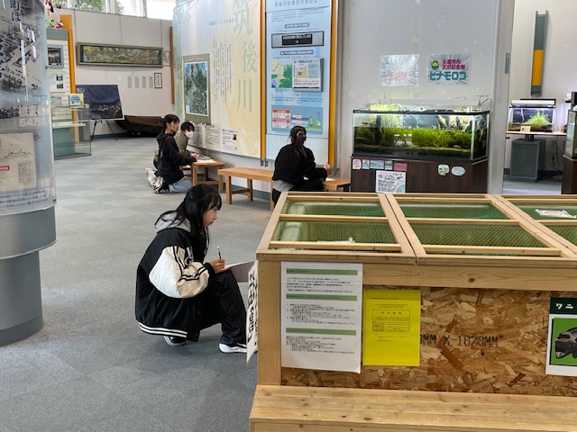 また施設内には日本固有の水生生物や外来種も展示されており、生態系の変化による絶滅危惧種が増えていることなど、河川環境を保全していくことの大切さを学習しました。