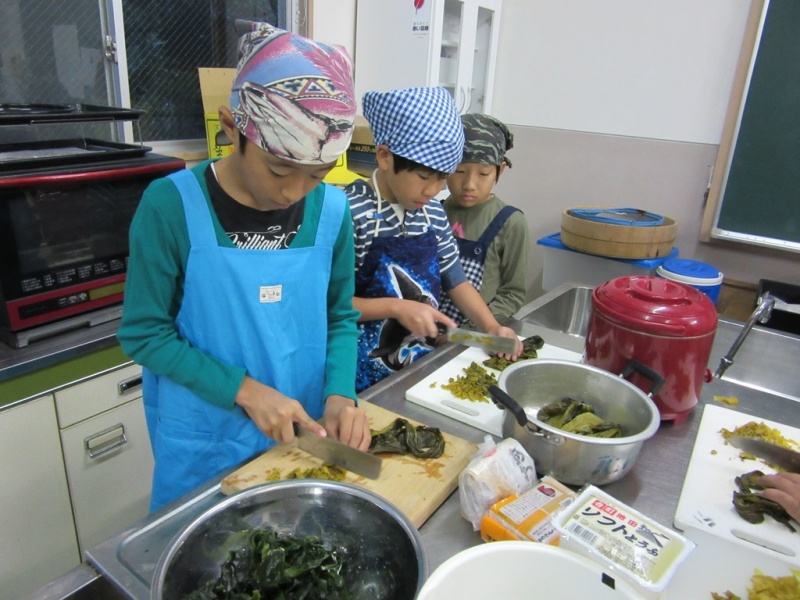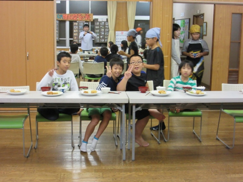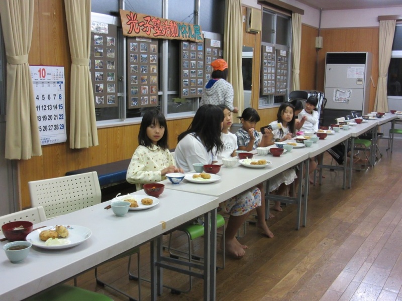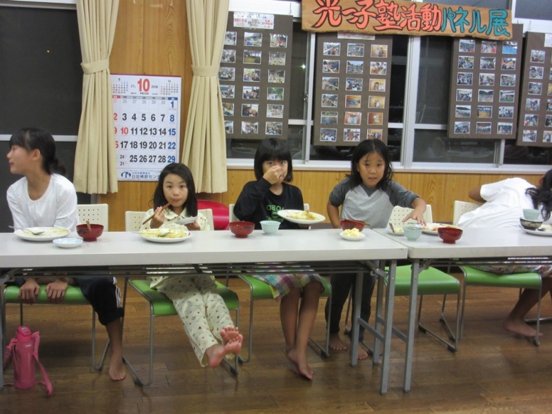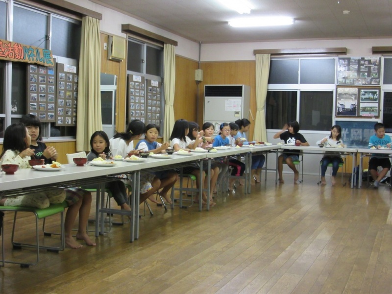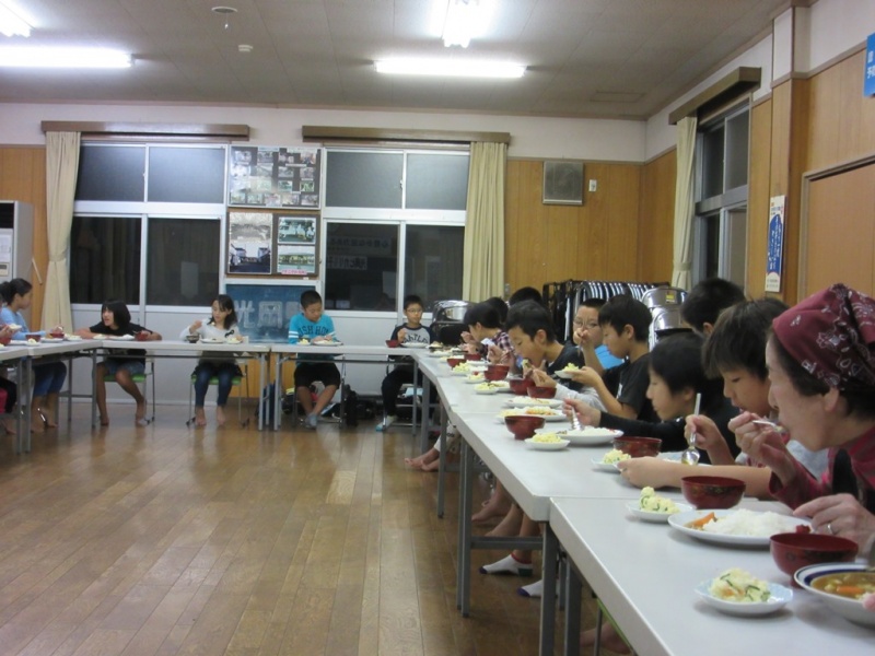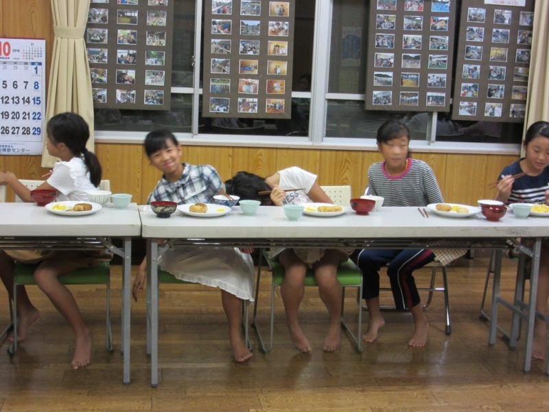 野菜の皮をむくくらいしかしていないのですが、子どもたちが一生懸命がんばっていた姿と真剣な様子に心打たれたボランティアの女性方が、煮込んだ方がおいしいからと、お風呂に行っているあいだにやってくれたようです。