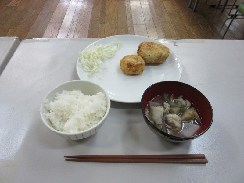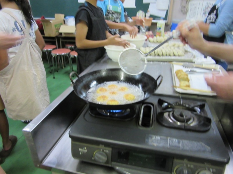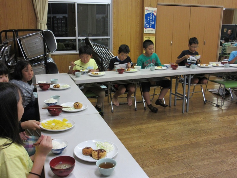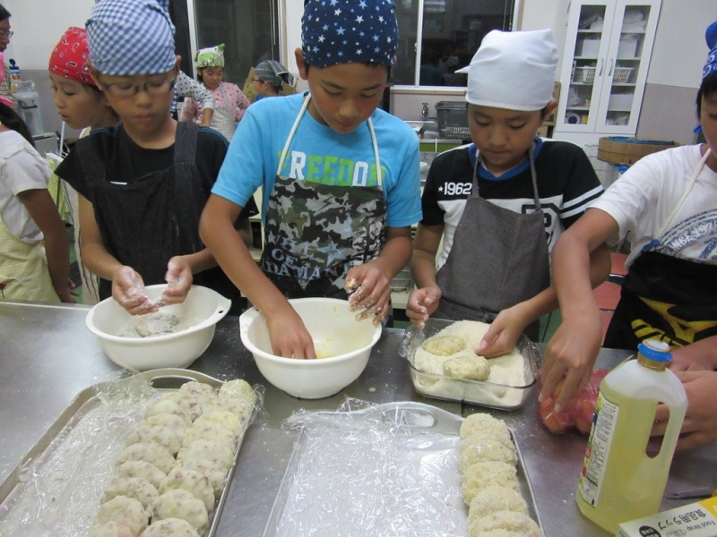 2日目の夕食は、コロッケです。揚げ物なので、危ないところは大人がやるため、どうしても見ていることが多くなりがちです。