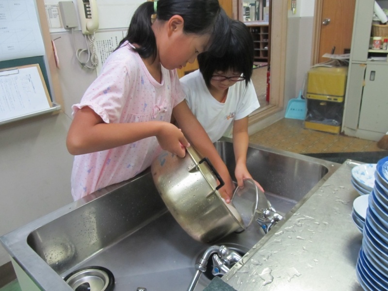 みんなで食べる最後の食事が終わってからは、班に分かれて館内の掃除をしました。