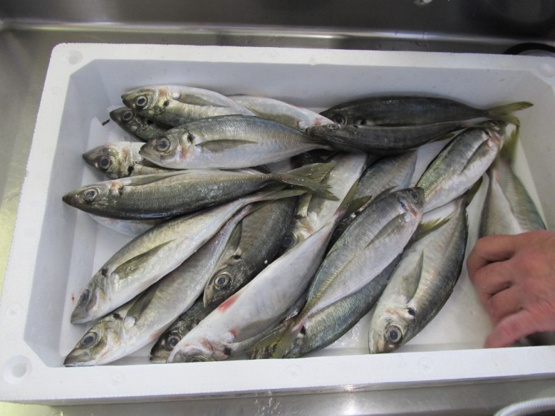トロ箱2つ分のアジを手分けしてさばいて行きました。