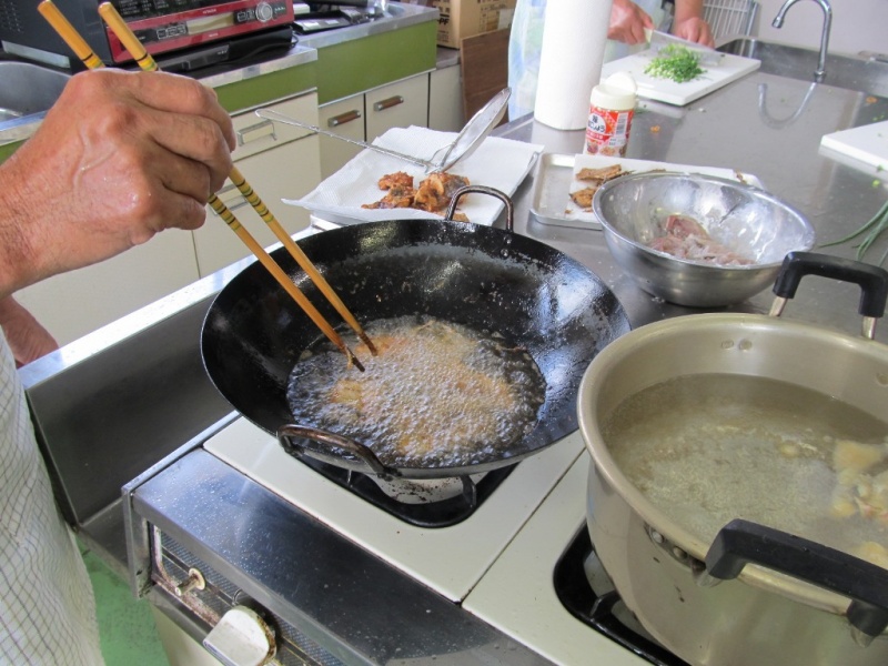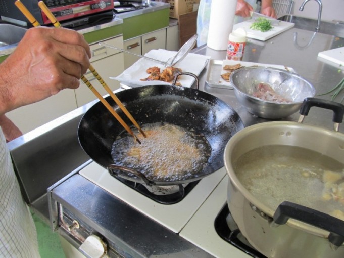 調理したアジは、それぞれ油で揚げたり、開きは焼いたりと料理。