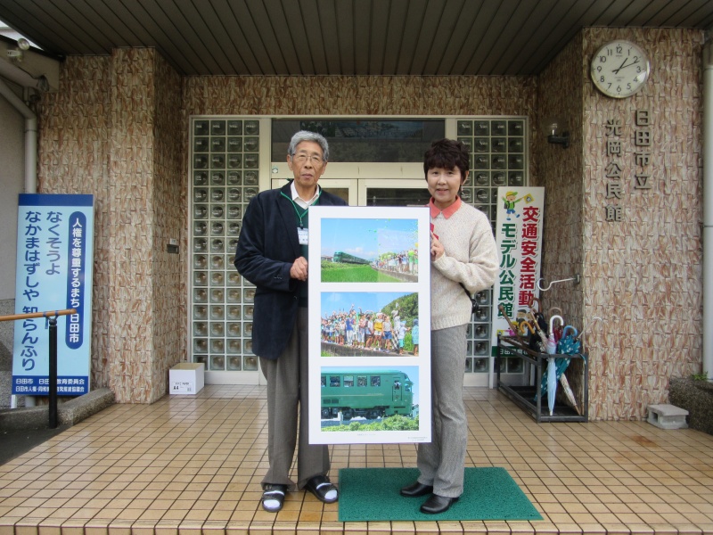 岡村さんは、ゆふいんの森号に手を振る笑顔いっぱいの地域の方の写真をぜひ地元の方に見てもらいたいとの想いから、光岡公民館に寄贈の申し入れがあり、12月4日(火)にわざわざご来館いただきました。