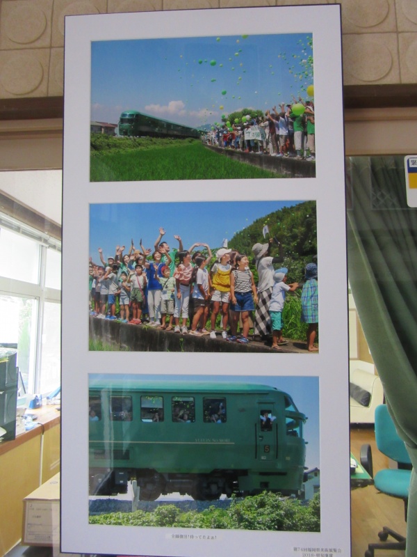 写真は3枚構成となっており、子どもや大人が満面の笑みを浮かべて手を振る姿や、その姿に応えるようにゆふいんの森号車内から手を振る乗客笑顔が素晴らしい作品になっています。