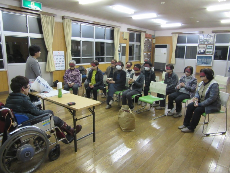 この日は人権学習会。障がい者理解をテーマに行いました。