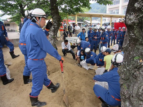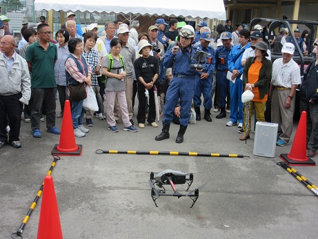 また、ドローンのテスト飛行、土のうづくり体験、消火器による消火体験などの活動が行われた他、自衛隊によるカレーの炊き出しには行列ができるなどの大盛況! 住民、関係者合せて500人を超え、梅雨入り前に有意義な訓練となりました。