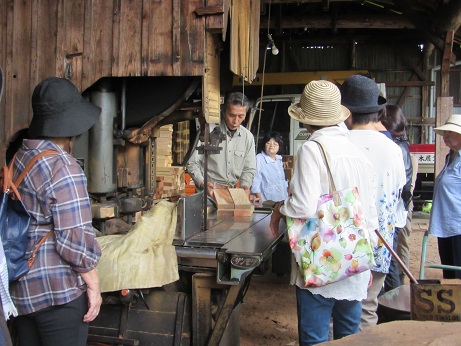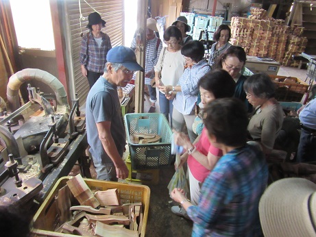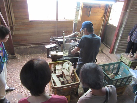 こちらでは、実際に機械を使っていただき、木地をつくる工程を見学させていただきました。
