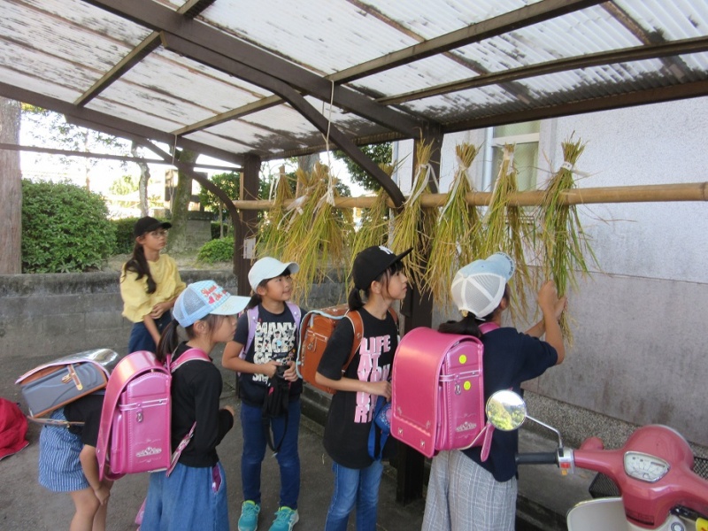 切り取った稲は干して、この後脱穀、精米をする予定です。