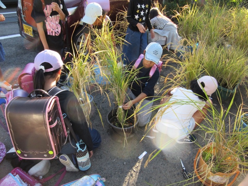 光岡ヒカリっ子塾 バケツ稲稲刈り!