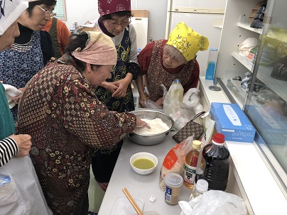 この日は前津江公民館まで出向き、郷土食の料理教室、前津江の神社など名勝を見学しました。