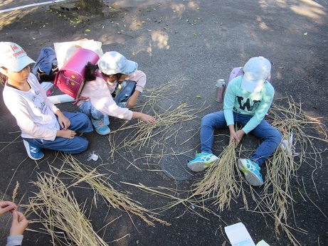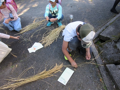 光岡ヒカリっ子塾 バケツ稲脱穀作業