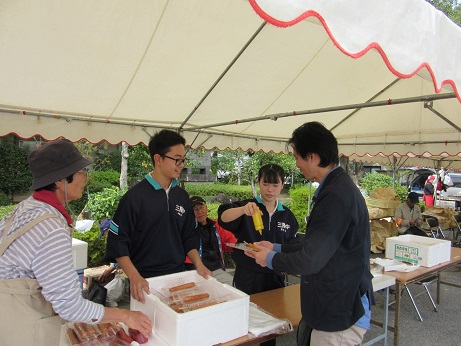 そして今回、多くの三隈中学校生徒の皆さんがボランティアとしてふれあいまつりに参加し、まつり前日には、机やイス、大きな展示パネルなどの運搬や、テント・会場の設営を手伝ってくれ、ふれあいまつり当日には、バザーの販売や後片付けで大活躍!本当に助かりました。