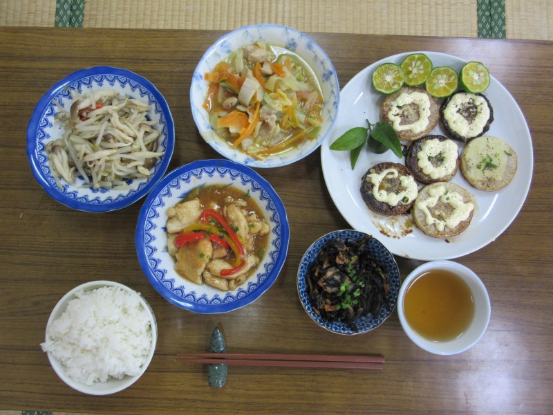 この日は、鶏むね肉とパプリカの中華炒め、もやしとしめじの中華和え、ひじきとベーコンのキムチ炒め、大根ステーキバター醤油、鶏肉と白菜のトロトロ生姜煮の5品。ド迫力のボリュームにお腹いっぱい…。