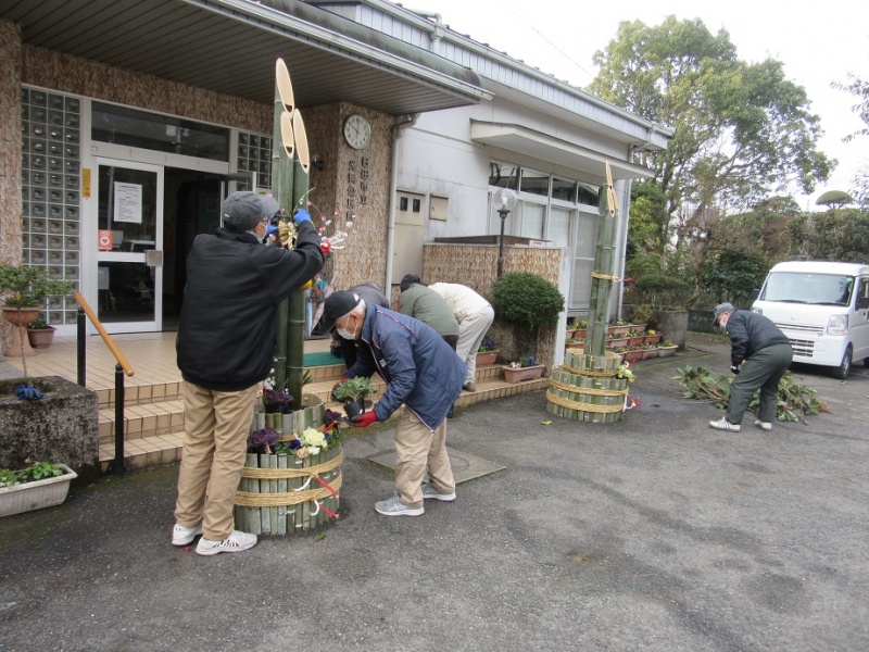 年末年始のひと月近く公民館の玄関前を彩ってくれた門松。