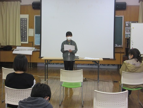 まずは1年間の活動の概要を振り返ったあと、個人発表、そしてグループでの発表を行いました。