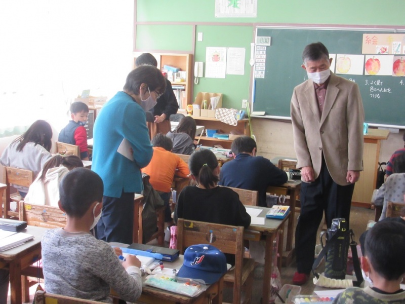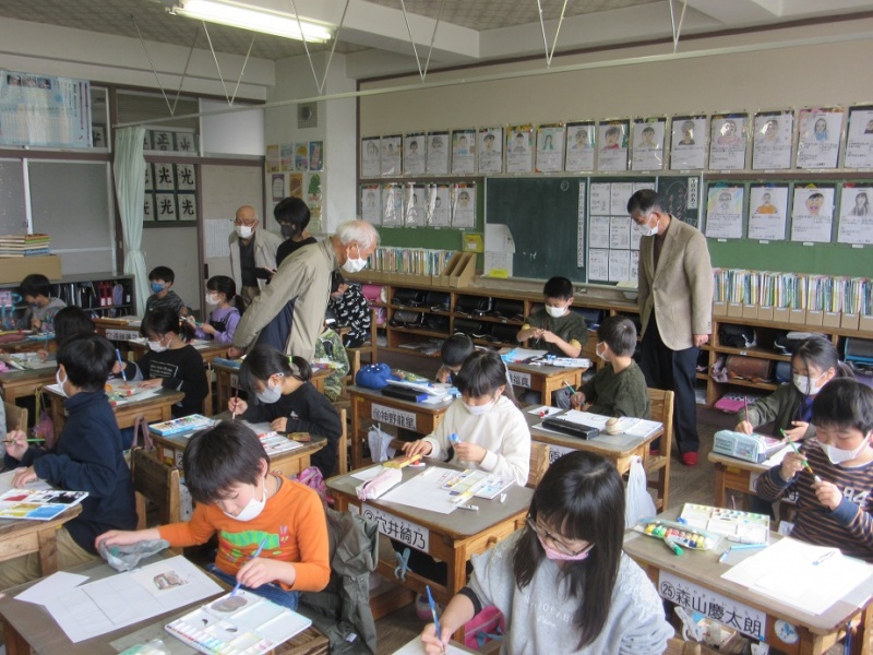 2月22日(月)、光岡小学校への学校支援協育事業の一環として、地域の方が3年生の絵手紙体験活動のサポートを行いました。