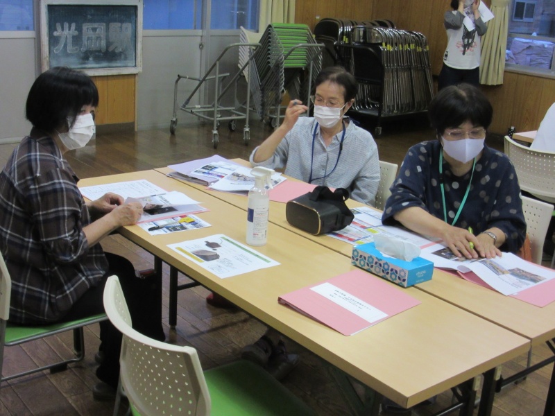 大分県から借りてきたVRを使って災害体験をした後、NPO法人リエラ
