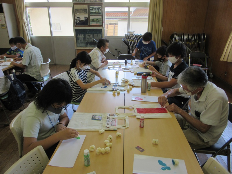 光岡ヒカリっ子塾と男の居場所メンバーが合同で『ステンシルバッグ作り』