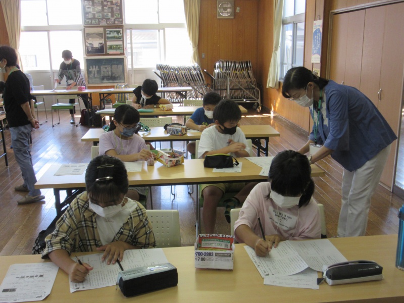 塾のみんなが楽しく交流を深めながら、オリジナルエコバッグを作りました。