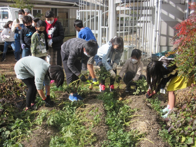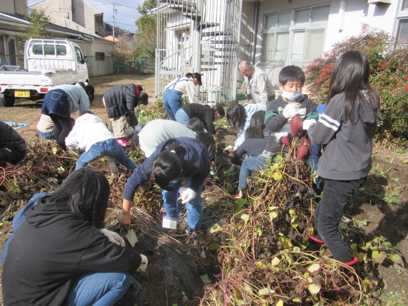 楽しみ、最後にサツマイモとジャガイモ掘りを行い、大きく