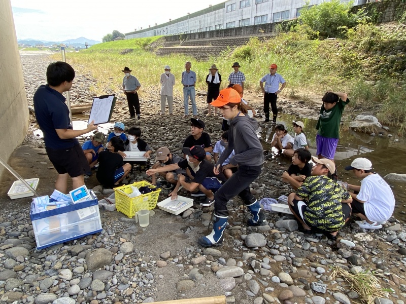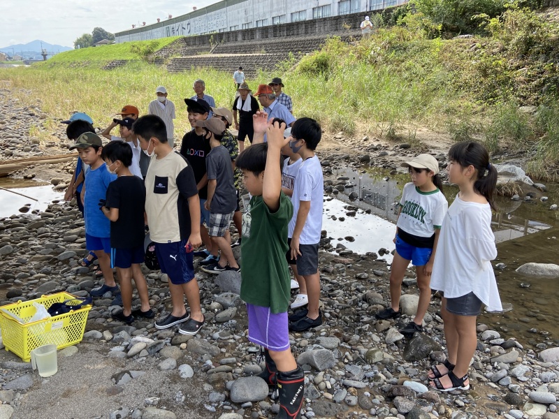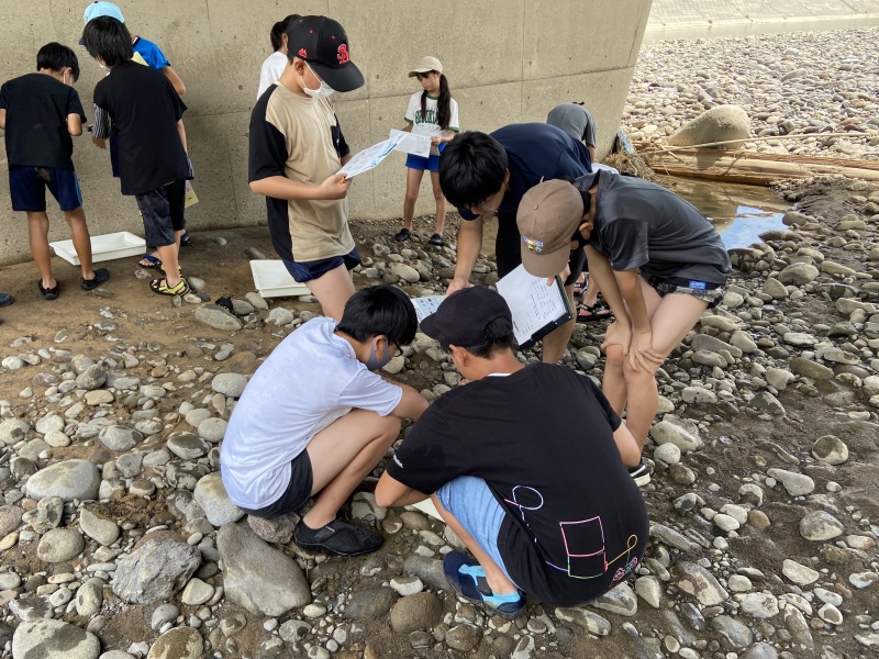参加児童は川の中に入って、一生懸命活動に取り組んでいました。