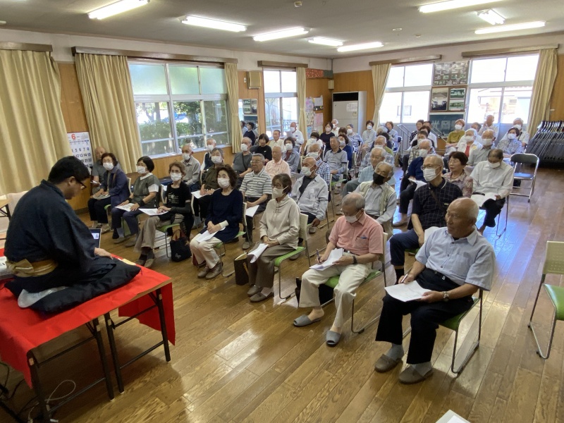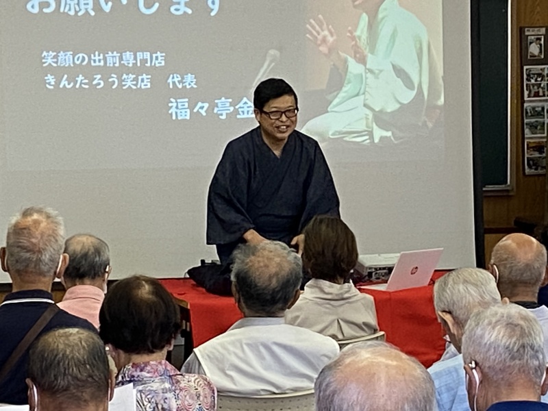 防災講座は堅苦しいものではなく、福々亭金太郎さんに楽