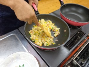 材料を刻んで準備した後、 園田先生にお手本を見せていただきました。