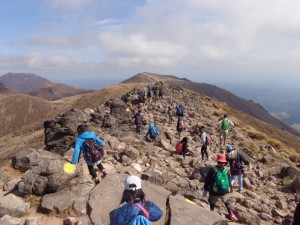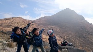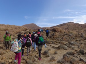 なんとか、みんな登頂!今回はお母さんが4名、お父さん1名も一緒に登りました。