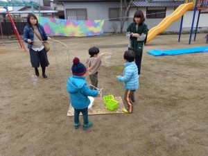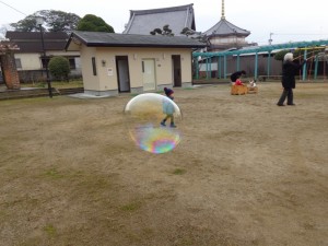 最初は風もなくシャボン玉日和!大きなシャボン玉が沢山出来ました。