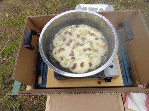 蒸しパンをおやつとして作りました。温かい蒸しパンを外で食べるととても美味しかったです。