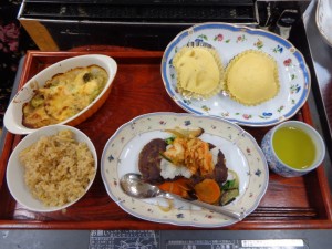 2班に分かれて、もちもちおろしハンバーグ(レンコン入り)、生姜飯、長芋の和風グラタン、リンゴとヨーグルトの蒸しパン