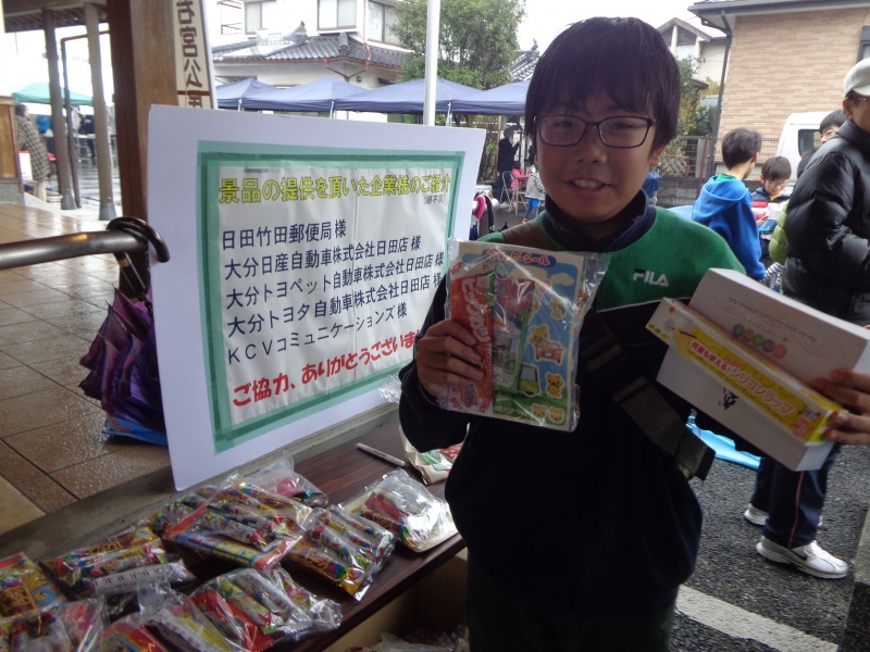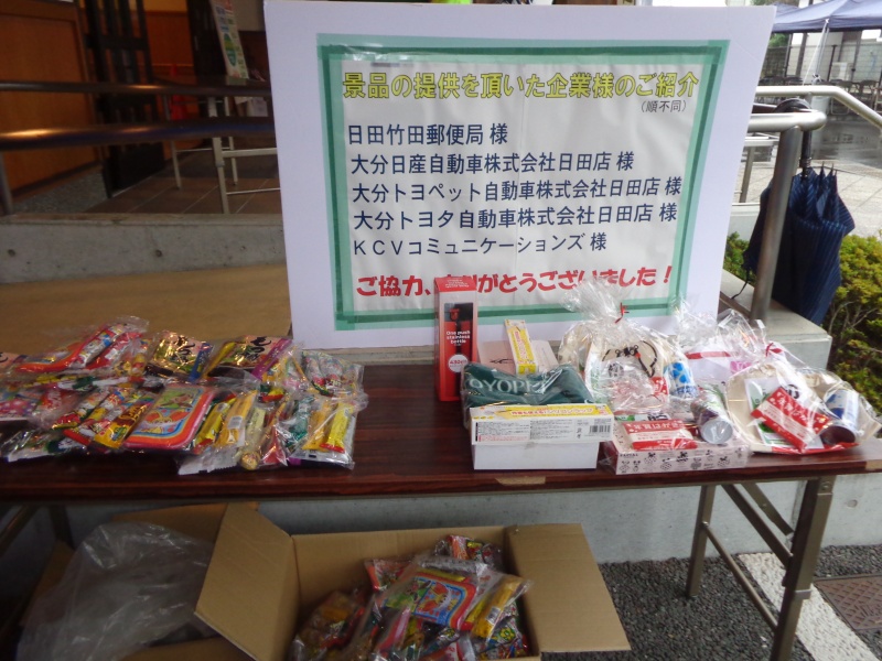 景品は若宮地区の企業様に提供していただきました。景品数は約60個。