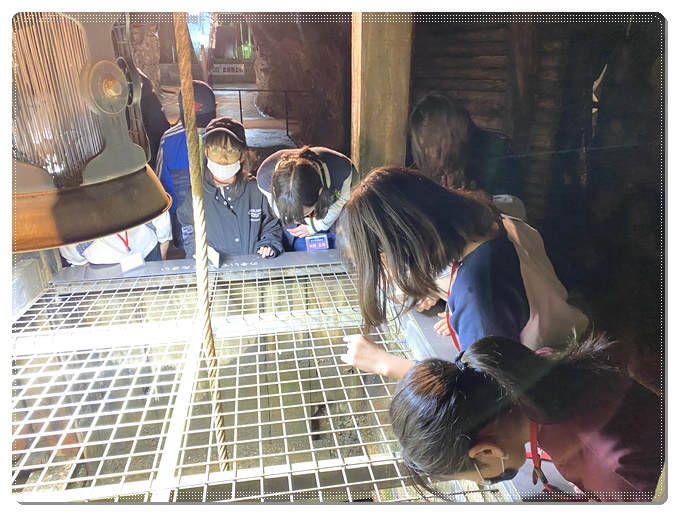 立坑をのぞき込む教室生。深さは500mに達するらしく、とても底を見とおすことはできなかったが、昔のの技術力に何を感じたのだろうか……