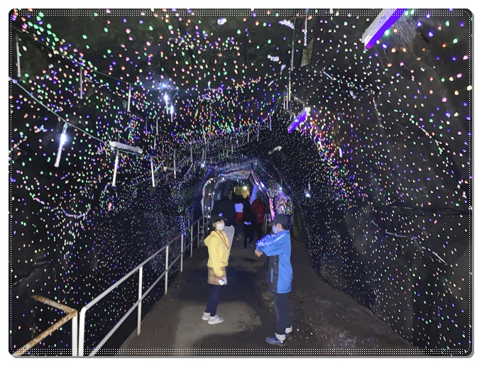 イルミネーションがまばゆい坑道の中を歩いていると幻想的な雰囲気にかられる